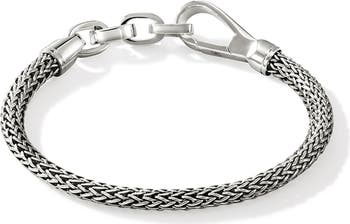 This sterling silver bracelet is handcrafted with a signature woven chain.