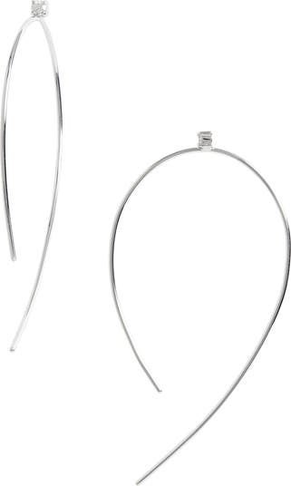Two sparkling diamonds accent the apex of modern hoop earrings designed with slender 14-karat gold wires that delicately thread the ear.