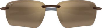 Rimless rectangular frames fitted with polarized Maui Ultra lenses offer superior visual clarity to lightweight wraparound sunglasses ideal for round or oval face shapes.