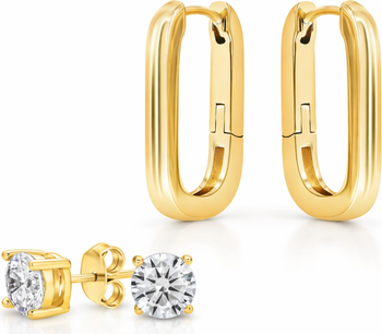 Experience effortless style and glamour with our "Set" Crystal Studs and Hoop Earrings. The hoops, measuring 11.5X19MM, are made with safe and hypoallergenic Metal, making them perfect for all skin types. The 4MM round sterling silver studs complete the set for a chic and versatile look.