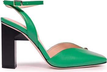 Architectural and head – turning ankle strap heels for work and play. The 2” diamond-shaped heel adds a modern and eye-catching touch to the sweetheart silhouette, making these shoes a perfect choice for those who want to stand out from the crowd. Adorned with the signature gold metal diamond stud that adds a chic touch for any fashion lover. The sweetheart silhouette and ankle-strap enhances the femininity of the design, creating a timeless and sophisticated look that is perfect for any special occasion.