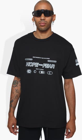 - HOPE over FEAR text at front, back and sleeve. Classic fit T shirt. 100% cotton, 6 oz. Made in Los Angeles.