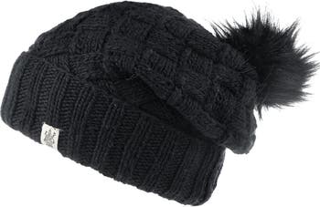 The Hope Slouch is made of 100% merino wool and features a criss cross knit cable design, wide rib fold band and faux fur pom pom. It is partially lined with fleece. Handmade in Nepal.