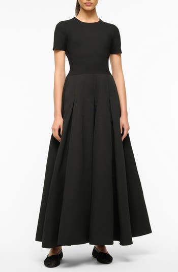In this quietly charming gown, a knit bodice gives way to a softly pleated, full skirt for a look that stays true to the brand's sweetly simple aesthetic.