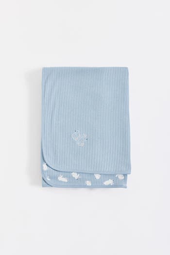 This blanket is made from 100% cotton, offering unparalleled softness for your baby. One side is a solid pink, featuring an embroidery. The other side is fully printed. Perfect for snuggling and comfort.