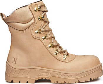 The Xena Horizon Lace-Up Safety Boot in Desert Tan combines rugged performance with a refined, feminine design built specifically for women. Featuring an ASTM-certified alloy toe, this boot delivers lightweight protection with a roomier fit to comfortably accommodate regular and wide feet. Crafted from durable waterproof nubuck leather, Horizon is designed to handle demanding job sites while maintaining a polished look. Puncture-resistant construction, electrical hazard protection, and a slip-resistant outsole help provide reliable safety and stability throughout the workday. Strong, functional, and versatile, it’s built for women who need performance without compromise.