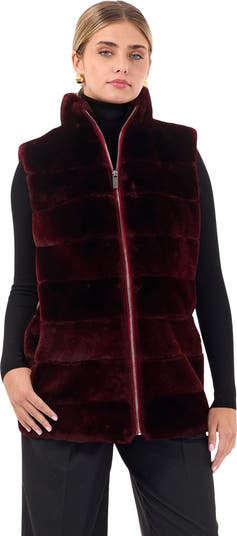 Horizontal Shearling Lamb Zip Vest With Quilted Back