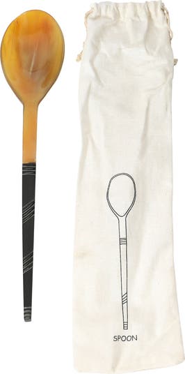 - This striking serving spoon showcases intricately carved horn with a 2 tone finish in a printed drawstring bag