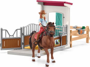HORSE CLUB: HORSE BOX - HANNAH & CAYENNE - Introduce a young fan to Horse Club – a world of friendship and adventure – with the Hannah & Cayenne playset from Schleich. The quarter horse gelding and her rider inspire never-ending stories. The rider figurine now has movable legs so she can sit in the saddle! Suitable for ages 5 and up. HORSE CLUB Hannah & Cayenne from the schleich® HORSE CLUB are an unbeatable team. They go together through thick and thin! The fully movable Hannah figurine can not only stand up, but also angle her legs to sit on her quarter horse gelding Cayenne. The set also includes a bridle, reins and a saddle for western riding because that is Hannah's passion. The red armband she wears is a sign of the close friendship between the HORSE CLUB friends. Inspiring figurines to play imaginatively and freely. So authentic, so detailed, even mother nature approves. High-quality craftsmanship to withstand father time. SCHLEICH: As an 85-year-old German toy company, we are committed to manufacturing realistic toys with the highest standard of quality and safety for years of durable play and collectability. All products and the materials used meet or exceed the strictest applicable toy safety requirements.