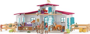 HORSE CLUB: LAKESIDE RIDING CENTER - Yaaaaaawn! Wake up, sleepy head! While you've been snoozing in the loft, other equestrians at Lakeside Riding Center have been getting time in the saddle. Shimmy down the ladder and hurry to the stalls, where your horse is nibbling hay and waiting patiently. Ooooh, maybe after practicing your saddle gait you could take a trail ride to the Rider Café (playset sold separately) for a slice of fresh-baked apple pie! It's gonna be a fully day at Lakeside! The new Lakeside Riding Center is the centerpiece of your Horse Club collection! Fully upgraded with TONS of new features! A new, open floorplan provides a spacious play area. The updated modular design means you can rearrange the playset infinite ways for limitless variety. More than 50 accessories for hours of play! The Lakeside Riding Center is the dream house Horse Club fans have been waiting for! SCHLEICH: As an 85-year-old German toy company, we are committed to manufacturing realistic toys with the highest standard of quality and safety for years of durable play and collectability. All products and the materials used meet or exceed the strictest applicable toy safety requirements.