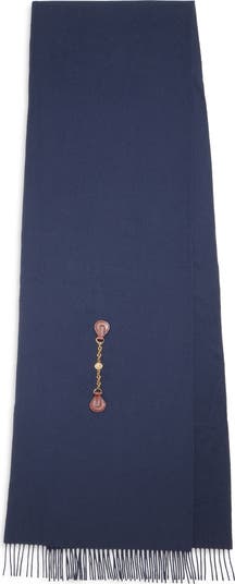 Commanding in scale yet whisper soft to the touch, this oversized wool scarf is finished with a goldtone chain crowned by a Horse medallion that links into supple calfskin pads to create a refined closure. Swinging fringe trims the ends for movement.