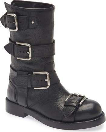 Bring moto edge to your casual looks with this runway-featured horse-leather boot distingushed by a quartet of buckle straps.