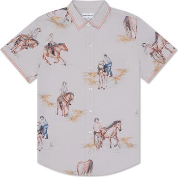 Gallop into the weekend wearing this fierce button-up shirt featuring horse-themed graphics. It's made with recycled plastic bottles and repurposed coconut husks for lightweight, quick-drying comfort.