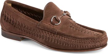 Gleaming horsebit hardware pays homage to Gucci's equestrian roots on this refined loafer crafted in Italy of supple calfskin suede elevated with intricate woven craftsmanship.