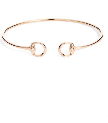 The brand-signature bit gets elongated into a slim 18-karat-gold cuff bracelet beaming with equestrian style and two bezel-set diamonds.