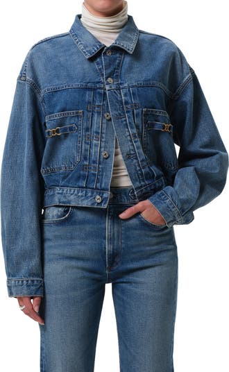 Cut from nonstretch Japanese denim, this boxy jacket is made with subtle structure and glossy horsebit details at the patch pockets.