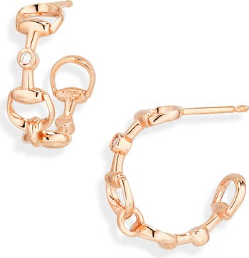 The Italian fashion house commemorates 20 years of the horsebit line with these 18-karat gold hoop earrings punctuated with diamond bezels.