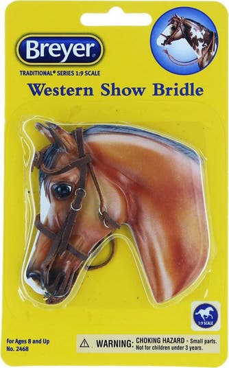 This traditionally-styled western bridle will make your horse show ring-ready. Western show bridle features a browband and split reins. Fully adjustable, you can customize the fit. Made to fit Breyer Traditional (1:9 scale) horses. Breyer accessories are authentically-styled, and look just like the real thing! Horse not included. From the manufacturer: Breyer is the maker of the world's finest model horses! Since 1950, Breyer has brought a wide range of horse breeds from around the world to life for play and collecting – including real horse heroes like racehorse Secretariat, Olympian Valegro, and reining superstar Big Chex to Cash! The Traditional Series offers an unmatched level of realism and attention to detail that is appreciated by children and adults alike. Each 1:9 scale model is meticulously hand painted in rich colors, so no two are the same. Breyer has an incredible community of model horse fans, artists, and collectors, and is proud to host BreyerFest: a three-day extravaganza for horse lovers and Breyer enthusiasts each July in Kentucky! Bring home a Breyer model, and let your imagination run free!