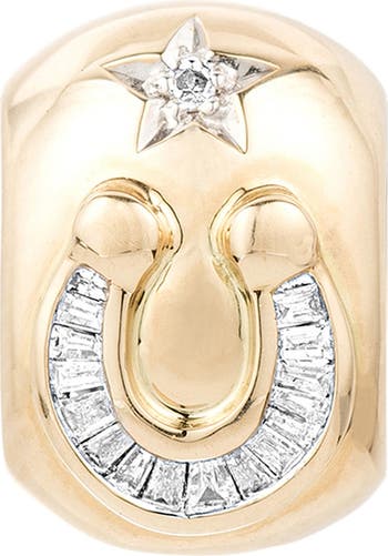 A diamond-filled horseshoe and star shine bright on this 14-karat gold charm that will be a lucky addition to any chain.