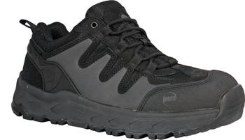 Designed for workers who need extra room without sacrificing protection, the HOSS Eric Low Composite Toe Wedge Work Shoe delivers dependable safety, durability, and all-day comfort in a wide-fit design. It features an oblique aluminum safety toe certified to ASTM F2413-18, providing impact and compression protection while offering added toe room for improved comfort. The full-grain genuine leather and nylon upper with a high-abrasion toe ensures long-lasting durability in demanding environments. A soft-rebound foam insole and rebound compound midsole cushion each step and provide responsive support throughout long shifts. The cement-constructed wedge enhances stability, while the slip-resistant rubber outsole delivers confident traction on oily and wet surfaces. ASTM F2413-18 M/I/C EH certified, the Eric Low is ideal for construction, manufacturing, warehouse, and industrial work.