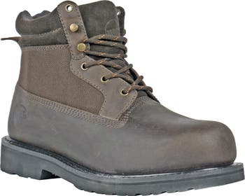 Built for demanding job sites that require maximum durability and protection, the HOSS Scout Steel Toe Work Boot delivers heavy-duty performance with all-day comfort. This work boot features a steel safety toe certified to ASTM F2413-18 M/I/C EH, providing reliable impact, compression, and electrical hazard protection for tough environments. The full-grain leather upper combined with a rugged nylon panel resists abrasion and stands up to harsh working conditions. Goodyear-welt construction paired with a durable PU outsole delivers long-lasting wear and confident traction on varied surfaces. A padded suede collar cushions the ankle to reduce fatigue during extended shifts, while a premium PU cushion insole absorbs impact and supports all-day comfort. Designed for professionals who need dependable protection and durability, the Scout is built to perform in demanding industrial and jobsite settings.