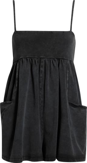 Elevate your casual ensemble as you run errands in a stretchy cotton romper flanked by spacious patch pockets and topped with adjustable shoulder straps.