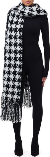 Houndstooth Check Bouclé Fringe Scarf