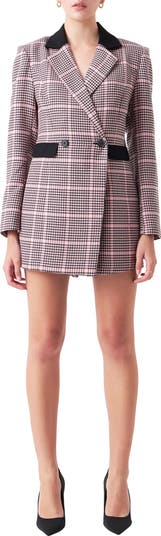 Set new boundaries for 'office appropriate' in this fitted romper rendered in a classic houndstooth check and punctuated with solid contrasts.