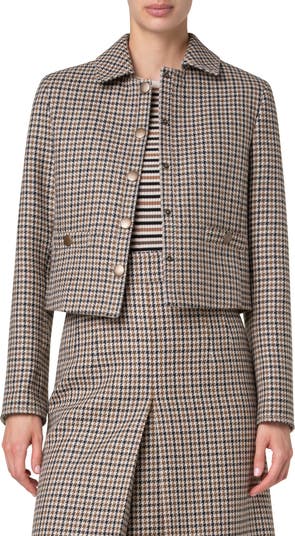 An inverted box pleat at the back refines the look and the fit of this cropped jacket cut from houndstooth wool tweed and detailed with brushed-metal snaps.