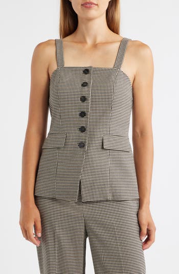 A mini houndstooth pattern and flap pockets bring blazer-inspired polish to this square-neck top that's ideal for off-duty days.