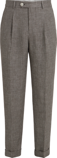 - Zip closure with button, metal hook and backing buttonSlanted front pocketsPleatBack welt pocketsCupro lining to kneeCuffed hem