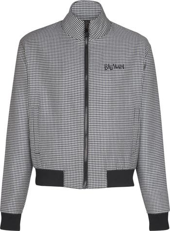 Houndstooth wool jacket Standing collar Long sleeves Balmain embroidery on the chest Side pockets Zip fastening with Balmain Paris-engraved slider Contrasting ribbed hem Straight cut Model measures 189cm and wears a size 48 Main material: 38% polyester 32% virgin wool 30% viscose Made in Moldova Item: GH1TFB11VI56 100% of the polyester fibres in this garment are recycled and certified, and 100% of its wool fibres are certified and sourced from animal welfare-friendly farms