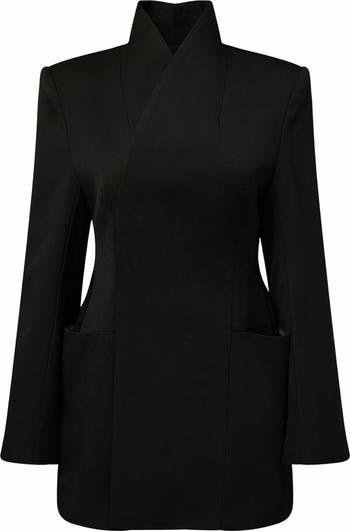 This double-breasted blazer jacket is minimal and sharply tailored, cutting an hourglass silhouette in suiting fabric. It has slit pockets and an inner button closure for a clean finish. Inside button closure Double-breasted Pockets 73% Polyester 25% Wool 2% Spandex Machine wash with like colors. Do not bleach. Hang to dry. Iron warm.