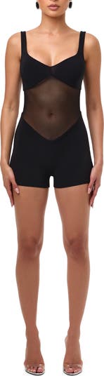 Naked Wardrobe Hourglass Mesh Tank Romper, Main, color, Black