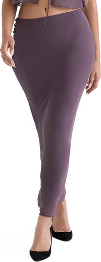 This bias-cut skirt gently grazes your ankles and features a low, hip-hugging silhouette.