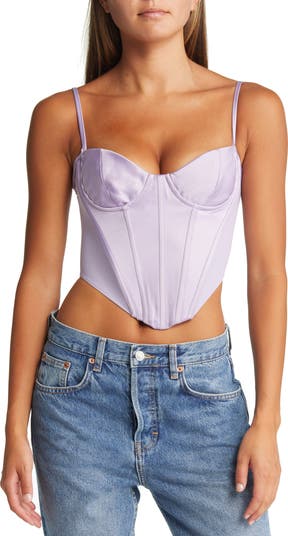 This corset-inspired satin crop top features powermesh and boning for structural support that's perfectly on trend.