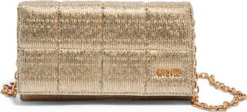 Gleaming hardware brings polish to this vegan-leather wallet crossbody bag featuring a box-quilted design.