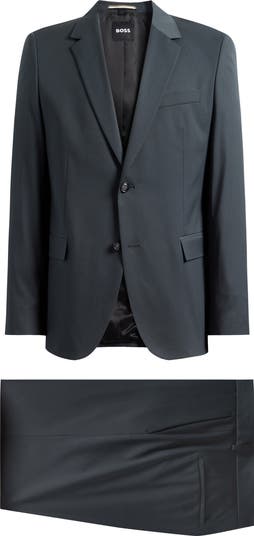 Cast in a dark, dusky green, this suit made in part with ultrasoft virgin wool features a slim fit and a fitted jacket providing a streamlined, contemporary look. The flat-front trousers sit right at the waist with lightly tapered legs blending traditional detailing with the modern profile.