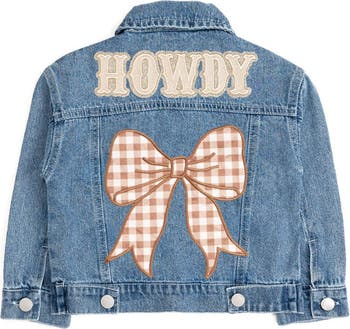The Howdy Gingham Bow Patch Denim Jacket is a fun and trendy jacket for showing off your cowgirl spirit!