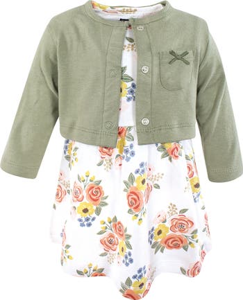 Hudson Baby dress and cardigan set is the cutest spring and summertime favorite. Both dress and cardigan are made from super soft 100% interlock cotton. Dress is sleeveless to keep cool on summer days while cardigan offers long sleeves and snap closure for easy on and off.