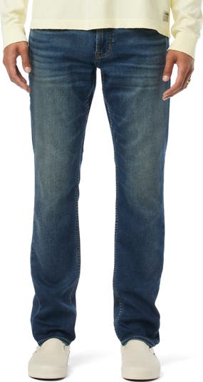 Fading and whiskering lend a broken-in look to these everyday, slim-cut straight-leg jeans made from soft, stretchy denim.