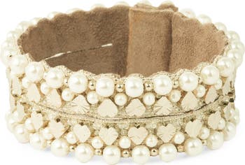 - Faux pearl/brass/textile/suede