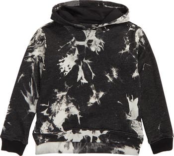 A splotchy black-and-white print amplifies his modern style in a soft cotton hoodie printed with 'The Future' on the back.