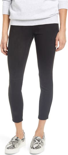 An ample amount of stretch furthers the comfort of these soft faux-suede leggings with a high rise that gives them a smooth fit.