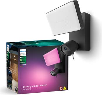 - Get powerful, colorful light, an integrated 1080p camera with night vision, and the ability to see what’s going on and control the light right from the Philips Hue app. Mount it outside to monitor your home in real time -- and then trigger an alarm to warn off potential intruders.
