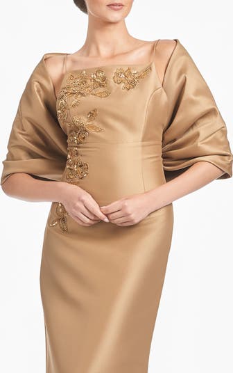 Complete a night-out look with a lustrous shawl rendered in a neutral shade.