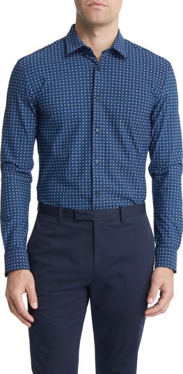 A lightweight stretch fabric enhances the comfort of this polished button-up covered with a minimalist print that won't overwhelm your look.