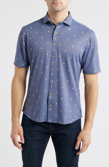 Hula Dance Print Short Sleeve Button-Up Shirt