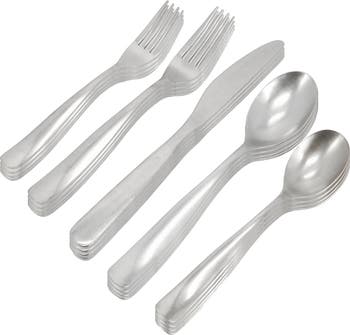 The Gibson Home Hulton 20-Piece Stainless Steel Flatware Set is the perfect combination of elegance and durability, ideal for both everyday meals and special occasions. This set includes 4 dinner forks, 4 dinner knives, 4 dinner spoons, 4 teaspoons, and 4 salad forks, providing all the essential pieces for a complete place setting. Crafted from high-quality stainless steel, each utensil is designed to resist rust and corrosion, ensuring lasting performance and a modern, polished look for years to come. The sleek and simple design complements any table setting, offering a sophisticated touch to your dining experience.Practical and versatile, the Hulton 20-Piece Flatware Set is dishwasher safe for easy cleanup, making it perfect for busy households. The ergonomic handles provide a comfortable grip, while the well-balanced construction ensures a pleasant dining experience. Whether you're hosting a dinner party or enjoying a casual meal, this set is the perfect addition to your table, elevating any occasion with its refined and timeless design. With its durable stainless steel construction and stylish appeal, the Gibson Home Hulton set offers both beauty and functionality for your everyday dining needs.