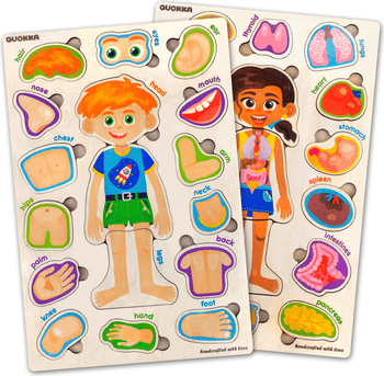 - Includes wooden puzzles and magnetic boards with anatomy themes